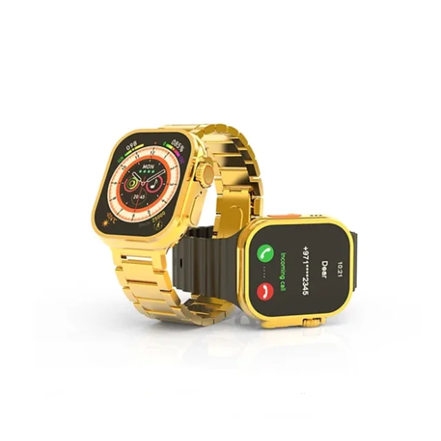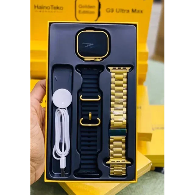 این ساعت دارای یک صفحه ی نمایش مستطیل شکل میباشد.بدنه ی این ساعت از آلیاژ آلمینیوم و پلاستیک ABS ساخته شده است.این ساعت دارای یک صفحه نمایش بزرگ است که تصاویر را با کیفیت بسیار بالا به شما نمایش میدهد.روی این ساعت شما میتوانید واچ فیس های متنوعی انتخاب و حتی واچ فیس هارا به سلیقه ی خود شخصی سازی کنید.ساعت هوشمند G9 Ultra Max دارای وزن بسیار مناسبی است و در استفاده ی طولانی مدت مچ دست شما را خسته نمیکند.شیشه ی محافظی که روی صفحه نمایش این قرار گرفته است به قدری قدرتمند است که در برابر هر ضربه ای از این صفحه نمایش محافظت میکند.رنگ طلایی بسیار خاص ساعت G9 Ultra Max باعث میشود با هر استایلی به راحتی ست شو