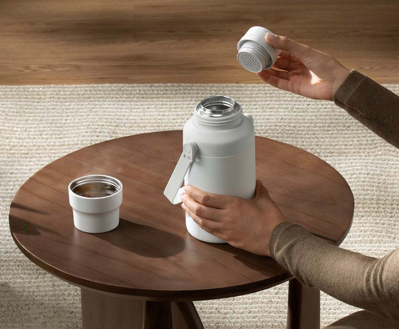 درب فلاسک علاوه بر عملکرد ضد گردوغبار، میتواند به عنوان لیوان نوشیدنی نیز استفاده شود.